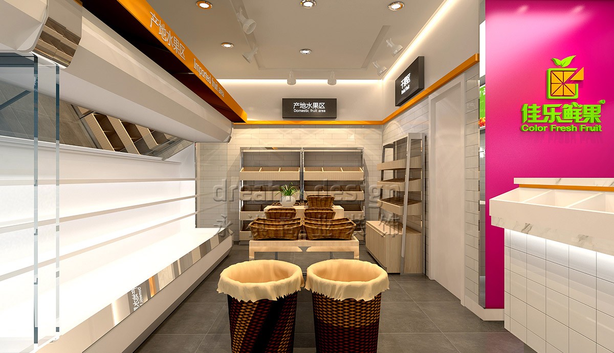 佳樂,來自一個男孩和女孩的名字,以及一個情感故事。男孩送給女孩一個在情感里的禮物,希望這個城市里的每一個人都能吃到有愛情滋味、鮮美、來自佳樂品牌的水果。在通過跟業(yè)主的溝通后。設(shè)計師在最低成本情況下,柱子的完美利用以及材料的選取,為空間營造出親切、溫暖舒適時尚的購物環(huán)境。
