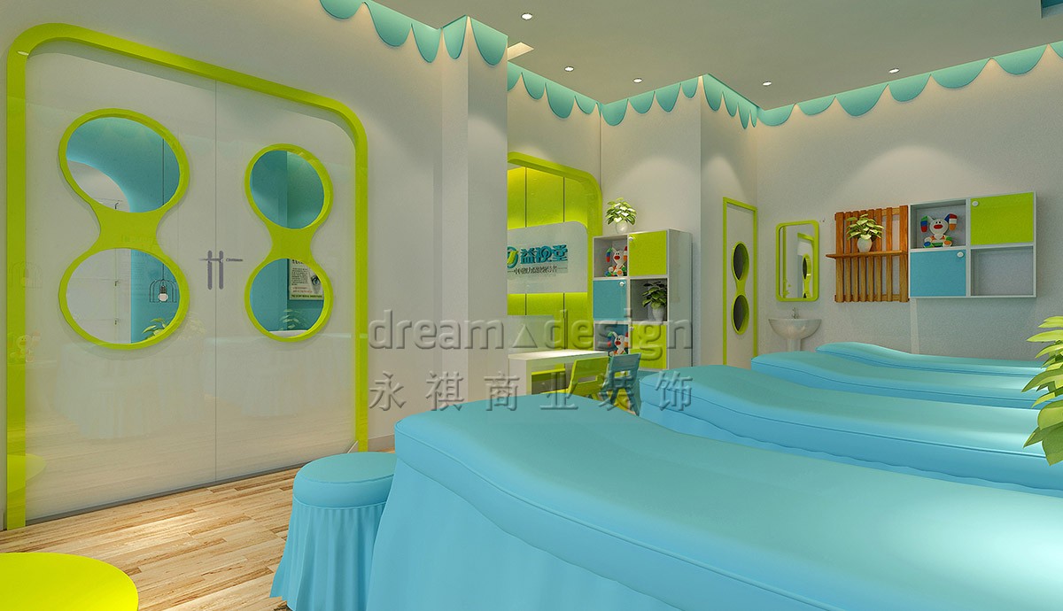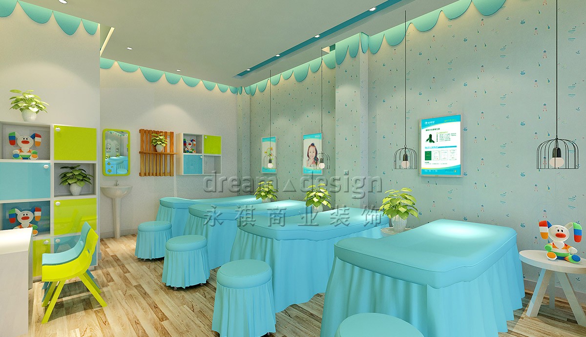 設計以藍色綠色為主,突出兒童活潑氛圍,減緩兒童治療過程中的心里壓力。