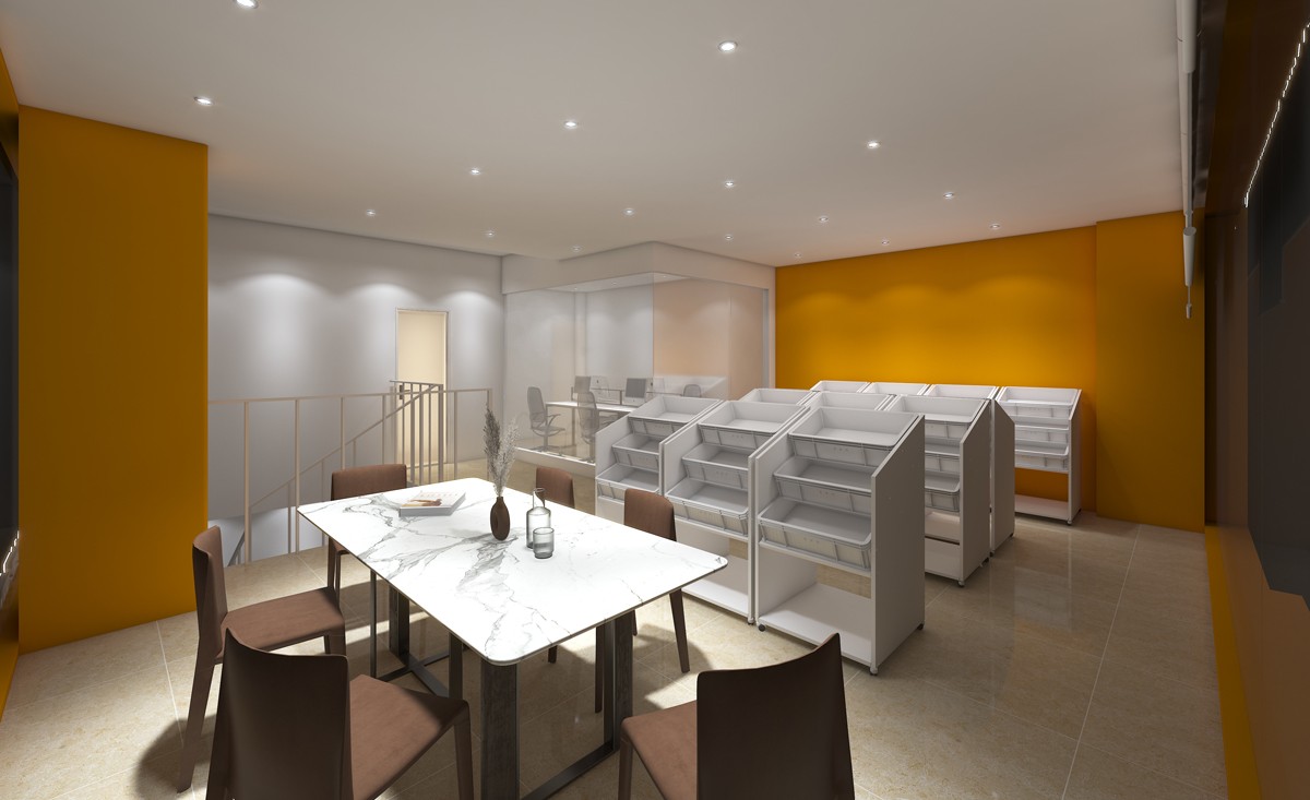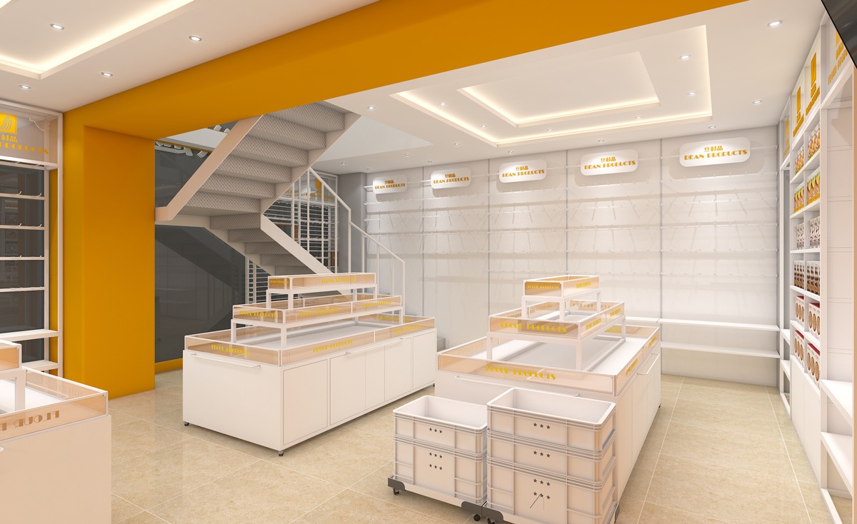 空間設計上大面積運用品牌主色,溫暖歡快的橙黃點亮了店面的視覺,營造出舒適愜意的空間氛圍。同時明媚溫馨的橙黃在色彩上鏈接金色的秋天與豐碩的果實,所以也有著富足與幸福的意義。