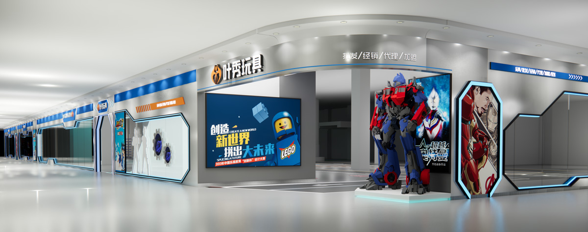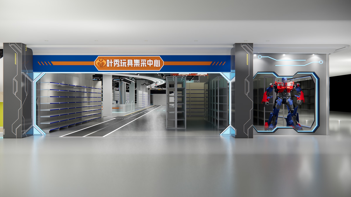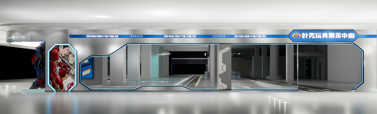 葉秀作為高橋商貿(mào)城最大的批發(fā)+零售的玩具品牌之一,無論是店面面積還是涉及的產(chǎn)品品類都極為廣闊。而對于一個這樣的可操作性較高的店面,客戶對于門頭的視覺沖擊感,和內(nèi)部貨品擺放的豐富飽滿也極為注重,并希望整個店面形象以一個玩具倉儲集合的形式展現(xiàn)出來,在帶來視覺震撼的同時,兼顧消費(fèi)體驗(yàn)的通透感。