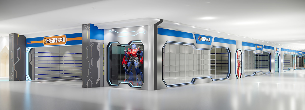 永祺設(shè)計師解析客戶需求,精準(zhǔn)洞悉80.90.00后為主的消費(fèi)群體記憶,從品牌經(jīng)營產(chǎn)品中的知名玩具奧特曼中提取設(shè)計的風(fēng)格與色彩,同時融入現(xiàn)代科技感的表現(xiàn)形式,通過燈光、造型的相互結(jié)合,打造更炫酷亮眼的門頭設(shè)計。此外,在內(nèi)部的陳設(shè)規(guī)劃上,強(qiáng)調(diào)產(chǎn)品體系的與比重的分布,使得在保持更多產(chǎn)品曝光時,照顧進(jìn)店客戶的視覺消費(fèi)體驗(yàn)。